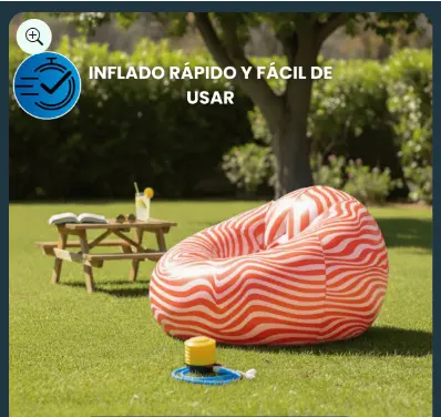Sofá inflable tipo sillón de aire, cómodo y práctico. Ideal para uso en interiores o exteriores, brinda descanso inmediato gracias a su diseño ergonómico y resistente. Se infla fácilmente y es liviano para transportar, convirtiéndose en una opción versátil para el hogar, camping, playa o jardín.